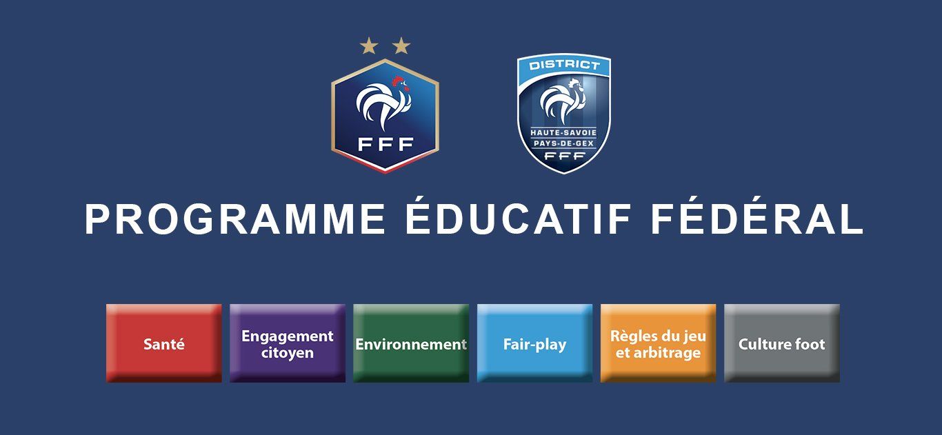 Lancé en 2014 par la FFF, le Programme éducatif fédéral (PEF) est un outil pédagogique complet, mis à la disposition des ligues, districts, clubs amateurs et professionnels, dirigeants et éducateurs, pour former les jeunes licencié(e)s U6 à U19 (5 à 18 ans) aux règles du jeu et de vie. Il concerne 800 000 jeunes licencié(e)s et plus de 5 600 clubs l’utilisent déjà.